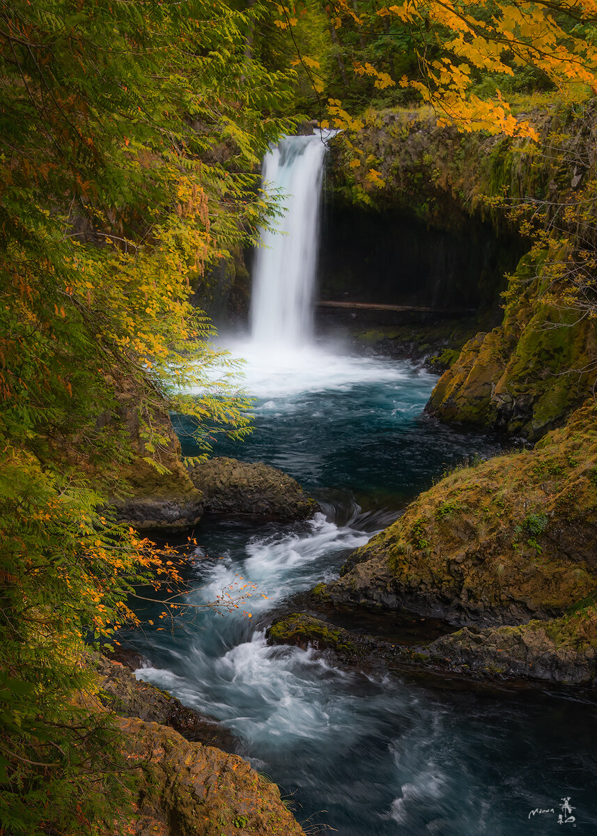 This beautiful waterfall from Oregon was flowing so much that day, I got so drenched while trying to take this image, which was quite a challenge from all the mist getting deposited on the lens.